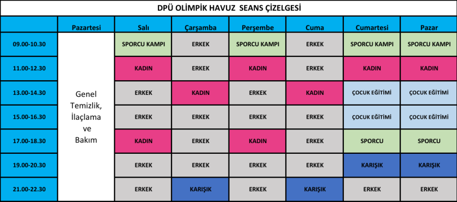 HAVUZ SEANS KULLANIM SAATLERİ
